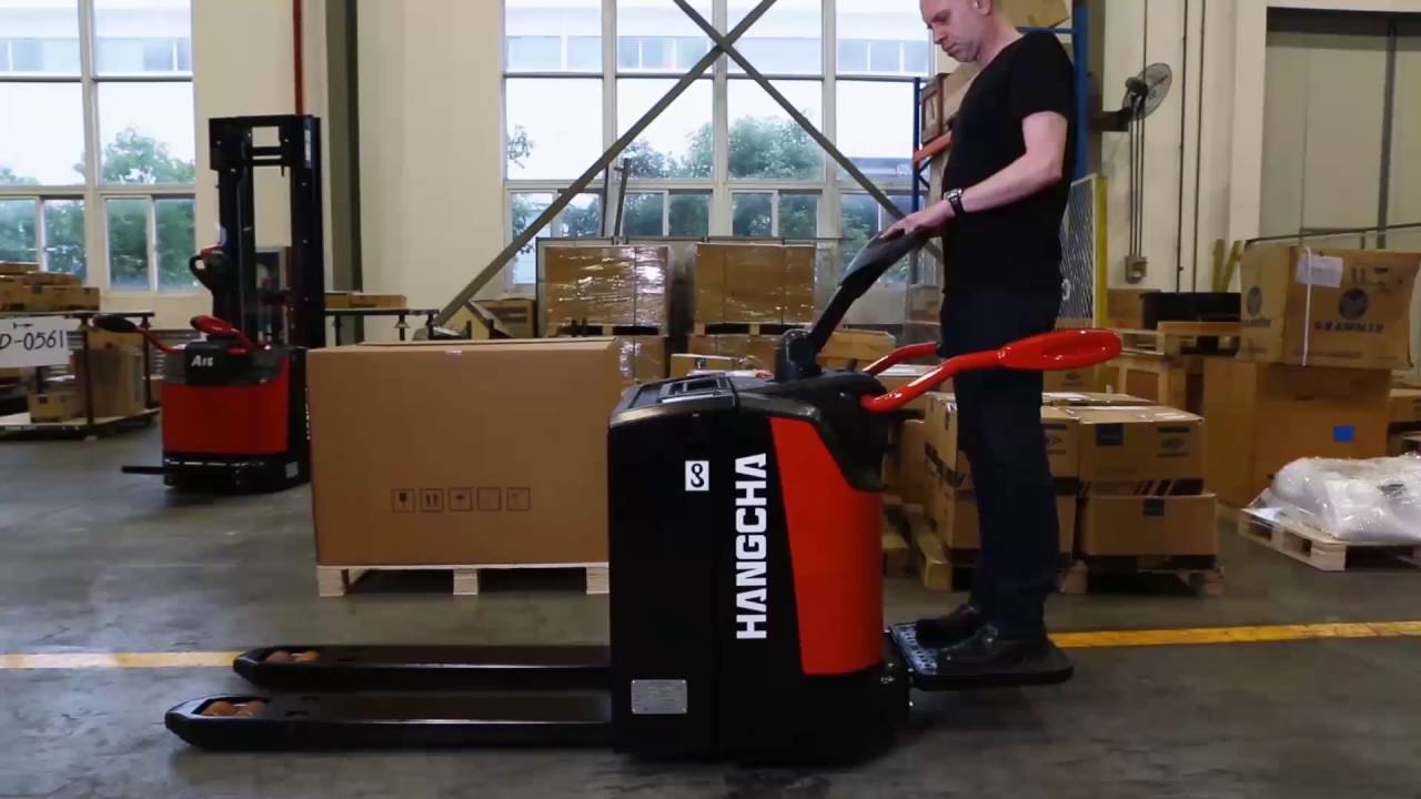 Эта паллетная тележка предлагает рекуперативный тормоз и функцию предотвращения скольжения на склонах. Стоячий тип с приводным двигателем высокой мощности обеспечивает высокую скорость движения и хорошую способность преодолевать подъемы.